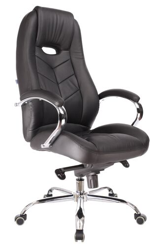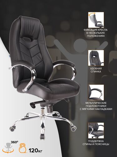 Кресло руководителя LEEDS CHROME A Кожа+компаньон Черная