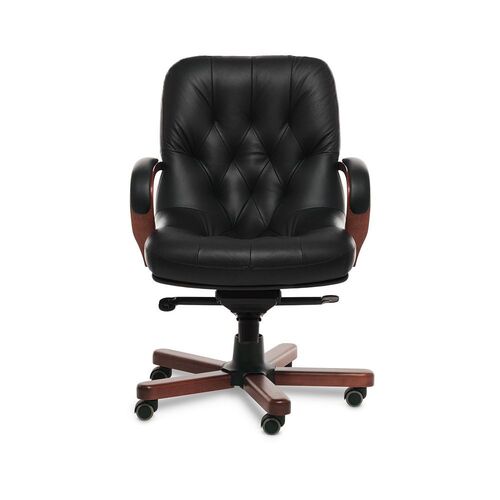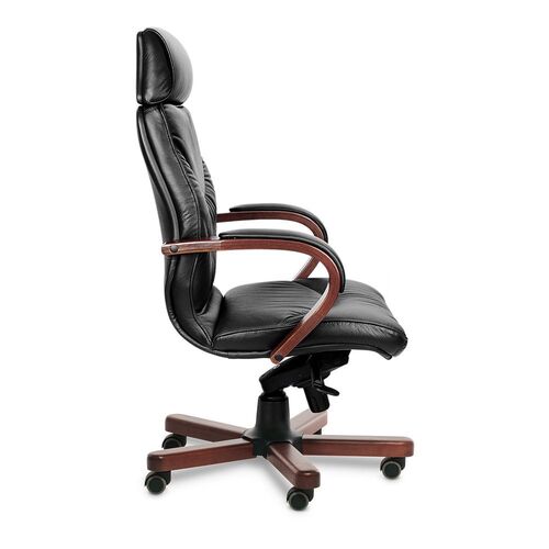 Кресло руководителя LEEDS WOOD A Кожа+компаньон Черная