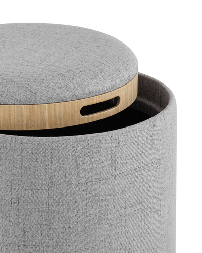 Сидеть на круглых пуфиках очень удобно, они весьма функциональны и минималистичны, могут служить подставками для ног или вмещать в себя мелочи благодаря небольшому хранилищу внутри.