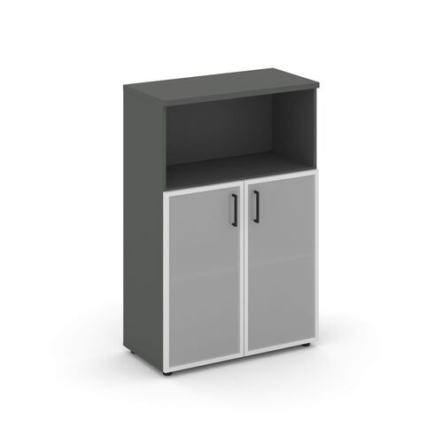 Шкаф средний широкий (2 низких фасада стекло сатин в раме) SN.STS.E-203 Антрацит