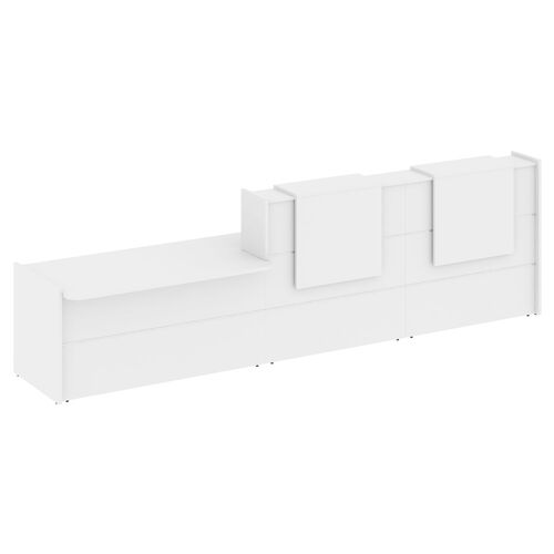 Основное назначение мебели на ресепшн – разграничение пространства на две зоны - административную и публичную. Эта офисная мебель может располагаться у входа в компанию, либо устанавливается в приемной, где служит для удобства обслуживания посетителей, регистрации звонков, решения различных служебных вопросов. Стойка прямой формы состоит из нескольких элементов – фасадной и гостевой части столешницы, внутренних перегородок и полок (у некоторых моделей). Плюсы такой мебели: