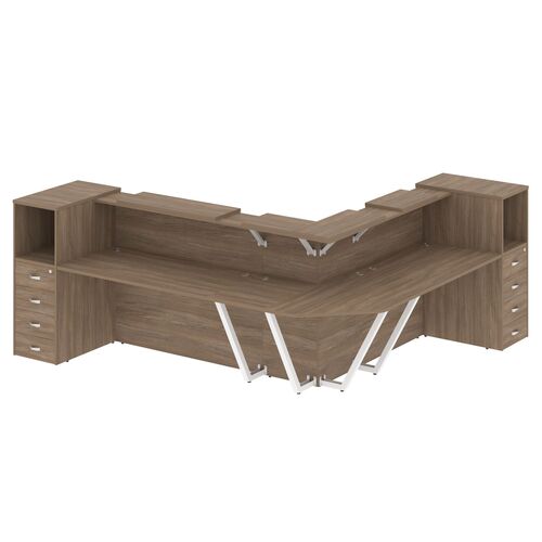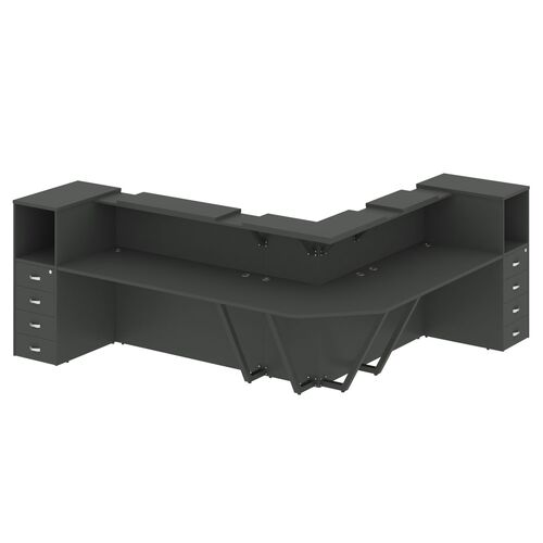Стойка ресепшен угловая левая (полки высокие) с подсветкой А4 9873 А4 9873 СЕ/СЕ/СЕ Серый