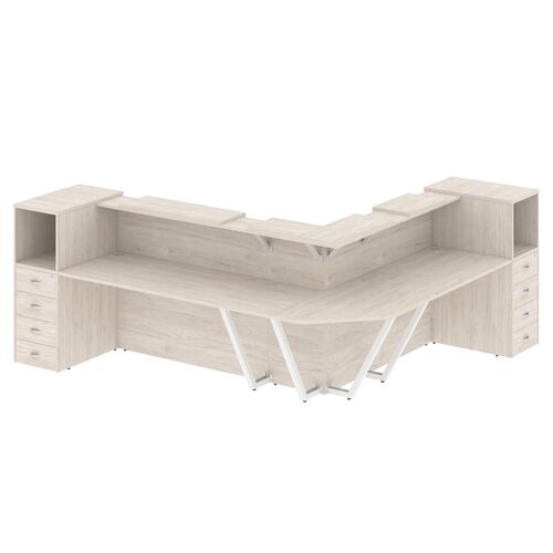 Стойка ресепшен прямая (полки высокие) с подсветкой А4 9837-3 А4 9837-3 ДШ/ДШ/ДШ Дуб шамони светлый