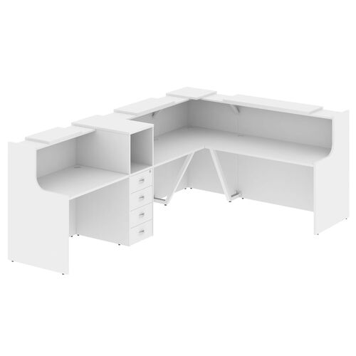 Стойка ресепшен П-образная (полки высокие) А4 9884 А4 9884 БП/БП/БП Белый премиум