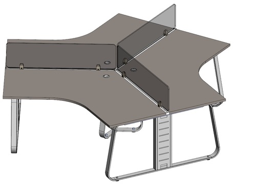 Рабочая станция на 3 места с кронштейнами и экранами из оргстекла JNO115
