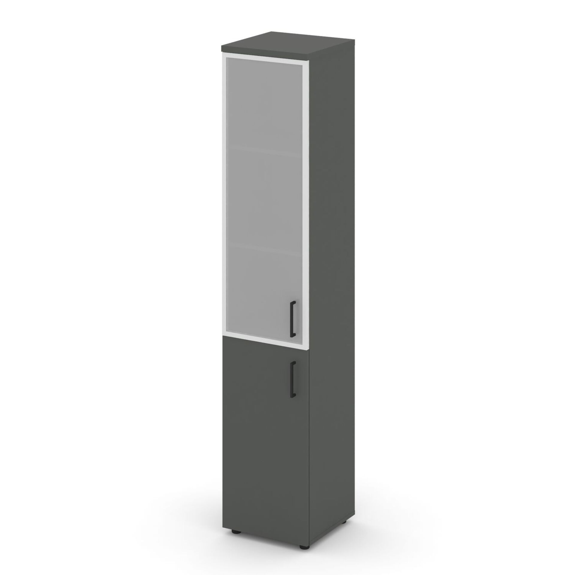 Шкаф высокий узкий левый (1 низкий фасад ЛДСП + 1 средний фасад стекло сатин в раме) SN.STU-103(L)