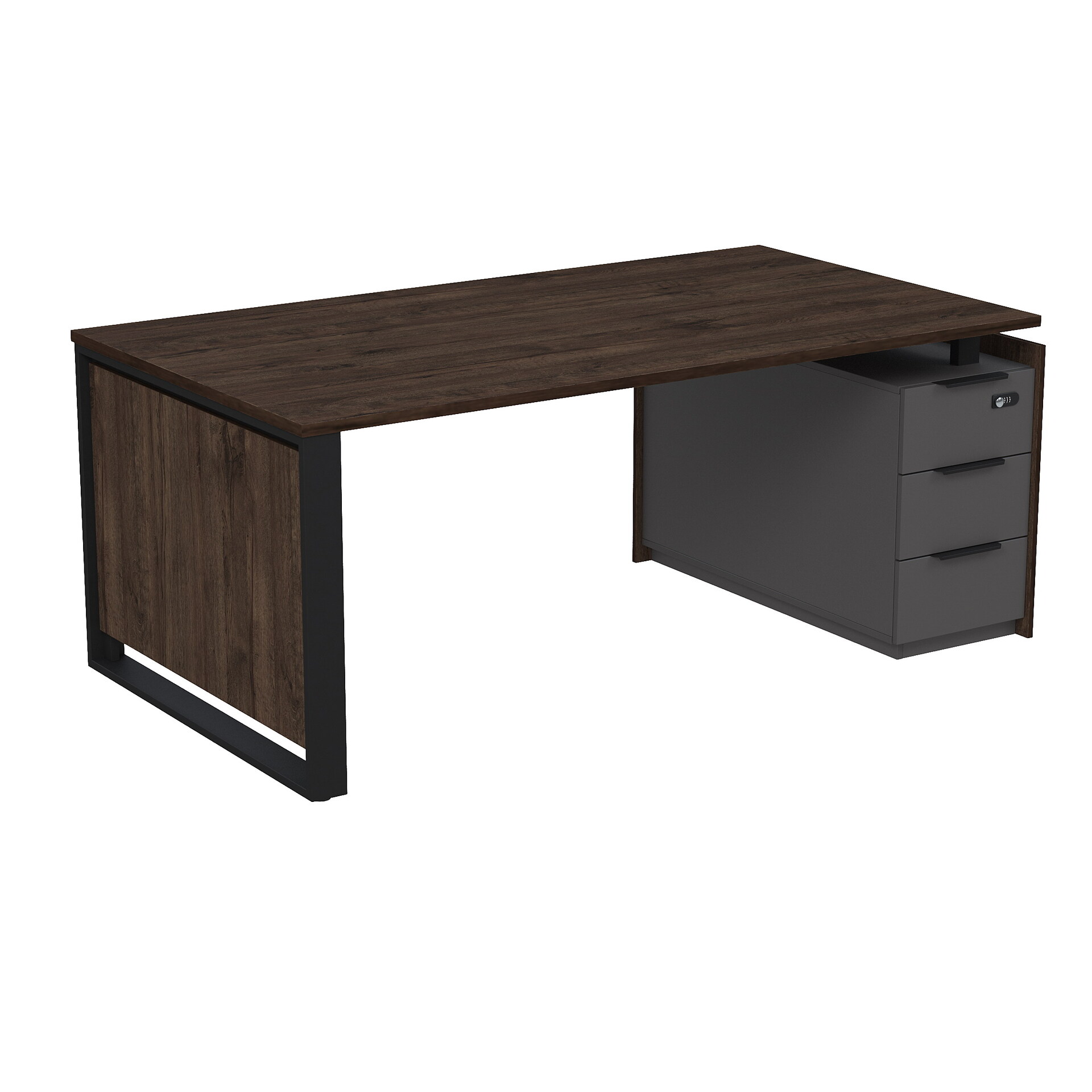 Стол рабочий на опорной угловой тумбе, с ящиками (метабокс), с код замком 15СОУ-КЗ.1810