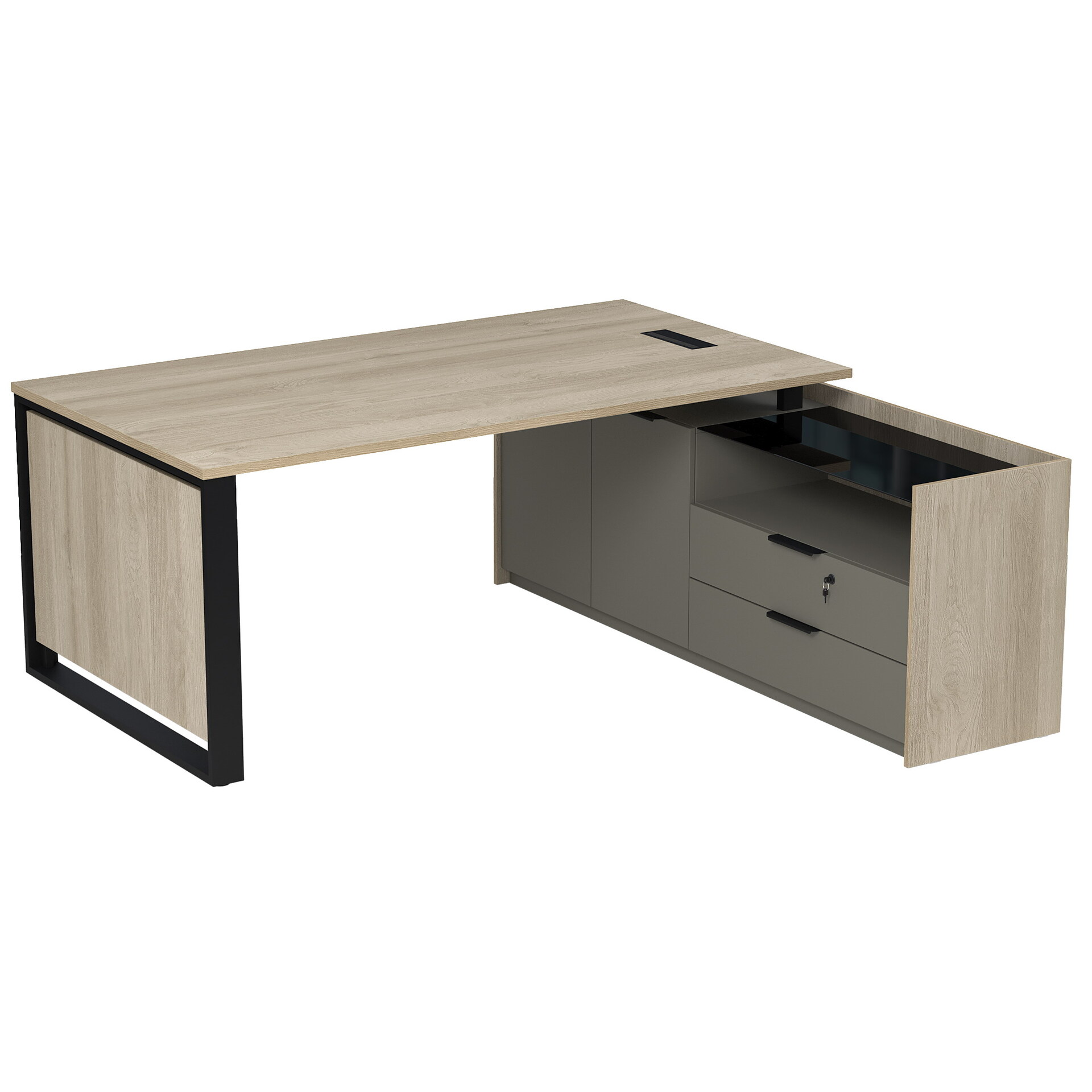 Стол рабочий с люч, на опорной двусоставной тумбе, с ящиками, с замком 15СОЛД-ШД.1609