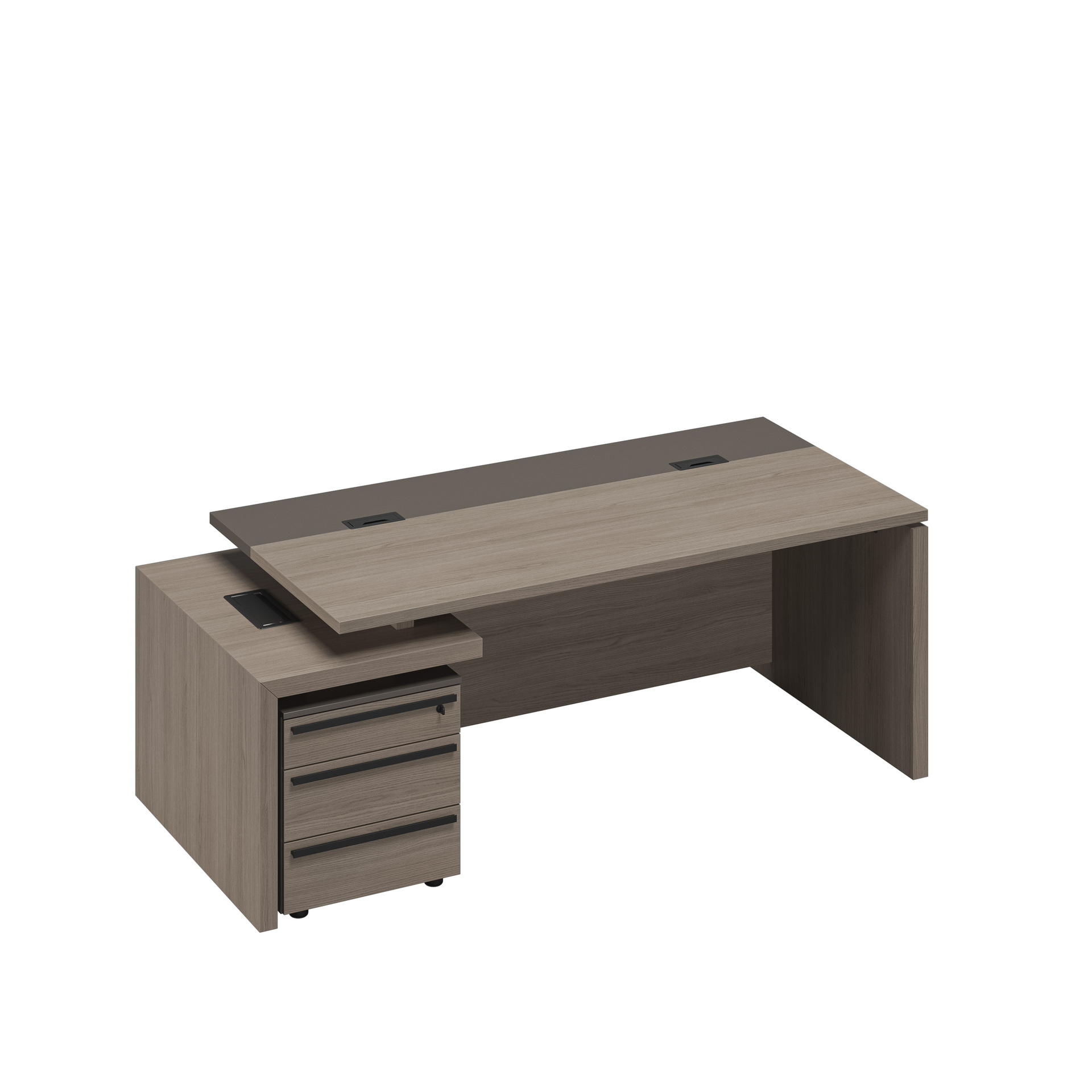 Стол руководителя с кабель-каналами с тумбой 3-ящичной с замком левый РС 121 ДЧ/ЛС